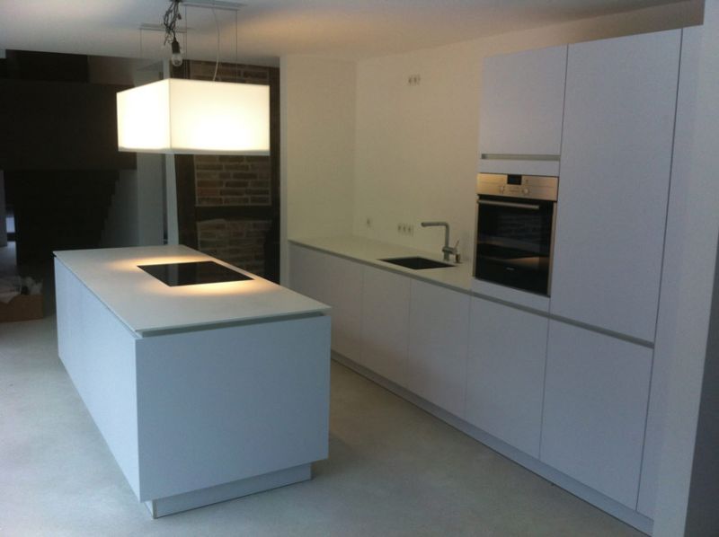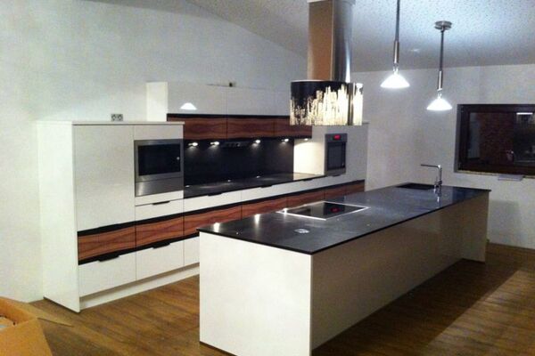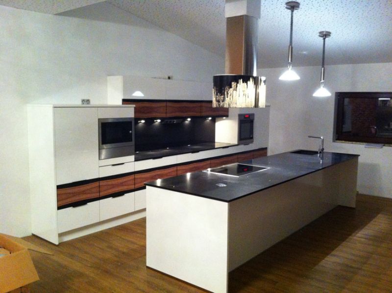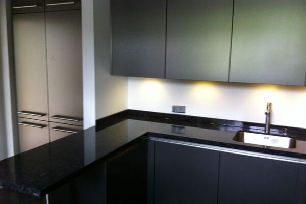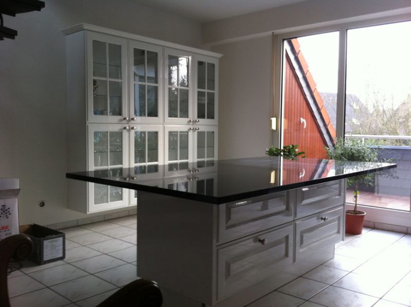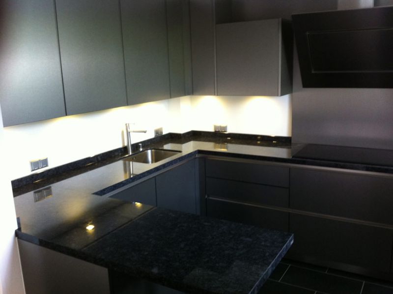 Hier finden Sie eine Auswahl an individuell angepassten Küchen mit Granit- und Quartzsteinoberflächen.